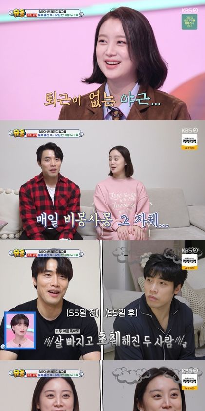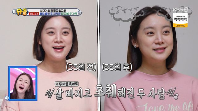 생후 55일 차 된 둘째 시안의 출산 전후 사진이 공개됐고, 현저히 살 빠지고 초췌해진 부부의 모습은 짠내 웃음을 안겼다.