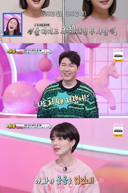 박수홍은 "나도 저 때 저랬다"라고 공감했고, 안영미는 "아빠가 웃음을 잃었다. 둘째를 얻은 대신에"라고 얘기했다.