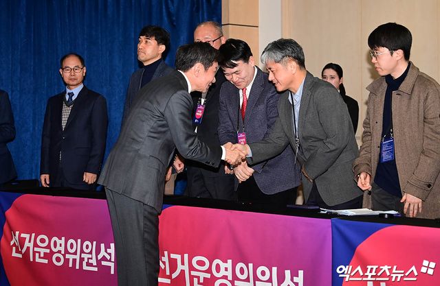 이어 "앞으로 여러분들에게 발표한 공약들을 철저히 잘 지켜가겠다. 그리고 같이 레이스를 뛴 신문선, 허정무 후보에게도 감사하다 앞으로 더 잘 노력하겠다. 기자분들께도 선거가 늦어져서 죄송하고 늦었지만 차곡차곡 하나하나 더 열심히 하도록 노력하겠다. 감사하다"고 밝혔다.