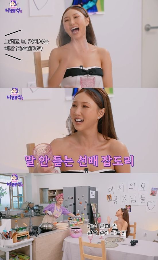 추억 토크를 나누던 박나래는 "'댄스가수 유랑단' 언니들하고 너무 친하게 지내더라. 너 거기서는 약간 공손하더라"라며 화사에 질투심을 드러냈다.