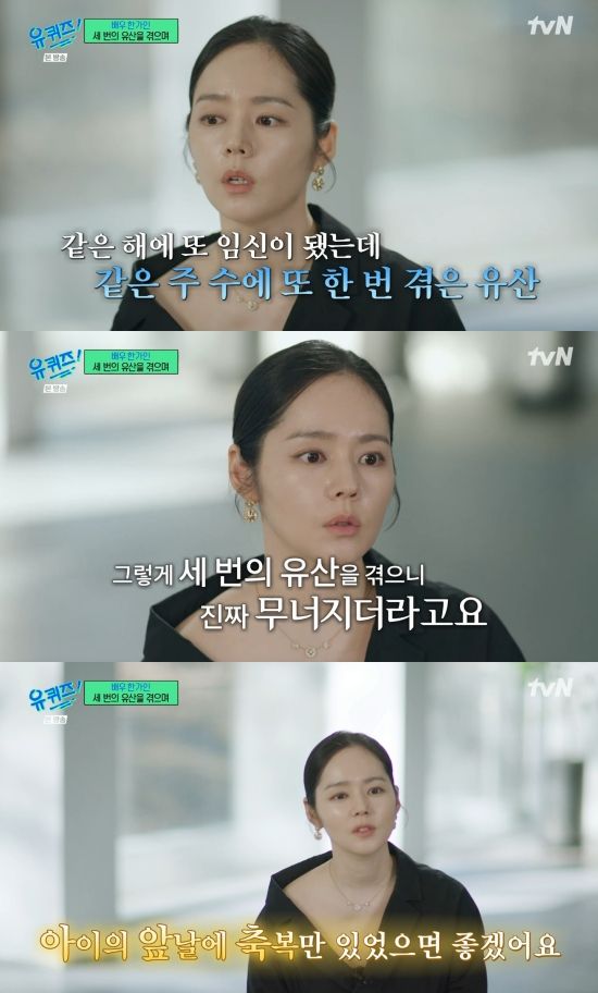 이날 한가인은 과거 한 해 동안 세 번의 유산을 경험했다고 밝혔다.