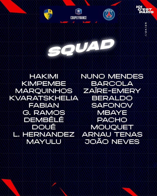 하지만 이강인은 26일 공개된 스타드 브리오신(4부)과의 쿠프드프랑스 8강전 출전 명단에서 빠졌다. 비티냐도 마찬가지였다.