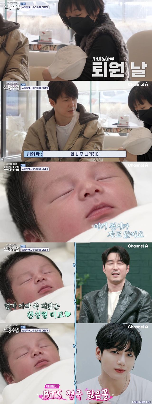 하루를 보던 심형탁은 "너무 신기하다"며 연신 감탄했고, 하루의 얼굴이 공개 되자 패널들은 감탄을 금치 못했다. 신생아임에도 불구하고 이미 완성형 외모에 눈길을 끌었다. 심진화는 "아빠보다 BTS 정국을 더 닮은 거 같다"고 극찬했다.