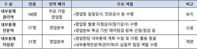 전국 29개 영업본부에 배치된 내부통제지점장은 내부통제전문역과 관리역들의 팀장 역할을 맡아 영업현장 내부통제 계획을 수립하고 관련 활동을 총괄하기로 했다.
