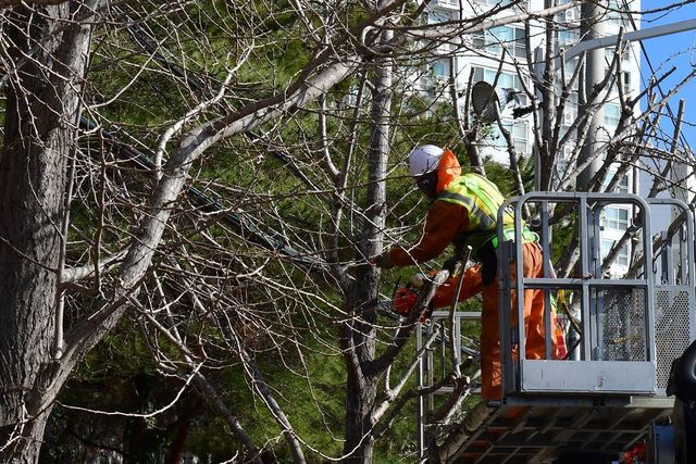 고소작업차에 올라 가지치기하는 남성. 기사와 무관한 자료 사진 / 뉴스1