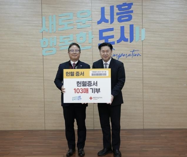[와이뉴스] 시흥도시공사는 지난 26일 임직원 단체헌혈 행사를 통해 기부받은‘헌혈증 103매’를 대한적십자사 인천혈액원에 전달하면서 생명 나눔을 실천했다.