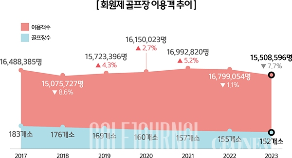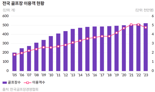 업계 관계자는 “코로나 기간에 폭증했던 수요가 정상화되면서 골프장 내장객 수도 정체 또는 감소 추이를 보인다”고 전했다. 실제로 코로나 시기에 치솟았던 그린피(이용료)도 하향 안정세다. 수요 둔화와 경기침체로 골프장의 영업실적은 전반적으로 주춤세로 돌아섰다.