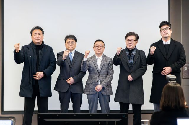 27일 서울 반포 JW메리어트호텔에서 한국음악콘텐츠협회(음콘협), 한국매니지먼트연합(한매연), 한국연예제작자협회(연제협), 한국음악레이블산업협회(음레협), 한국음반산업협회(음산협) 등 대중음악 5개 단체 주최로 ‘음반제작자가 없다면 K-팝도 없다’ 타이틀의 기자회견이 진행됐다. 현장에 참석한 한국연예제작자협회 임백운 회장, 한국음반산업협회 최경식 회장, 한국음악콘텐츠협회 김창환 회장, 한국음악레이블산업협회 박강원 이사, 한국매니지먼트연합 이명길 이사는 “위기의 K팝. 음반제작자가 없다면 K-팝도 없다. 편견을 넘어 모두를 위한 음악산업으로”라는 이날의 슬로건을 외치며 본격 기자회견의 시작을 알렸다.