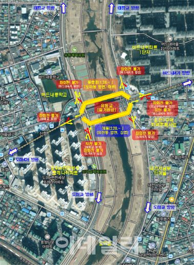 가설교량 전면 개통에 따라 일부 교통 흐름도 변경된다. 기존에 도마동 방향 가설교량 부분 개통으로 인해 임시 허용됐던 태평교 버드내 네거리 좌회전 및 도마교 도마 네거리 좌회전이 금지된다.