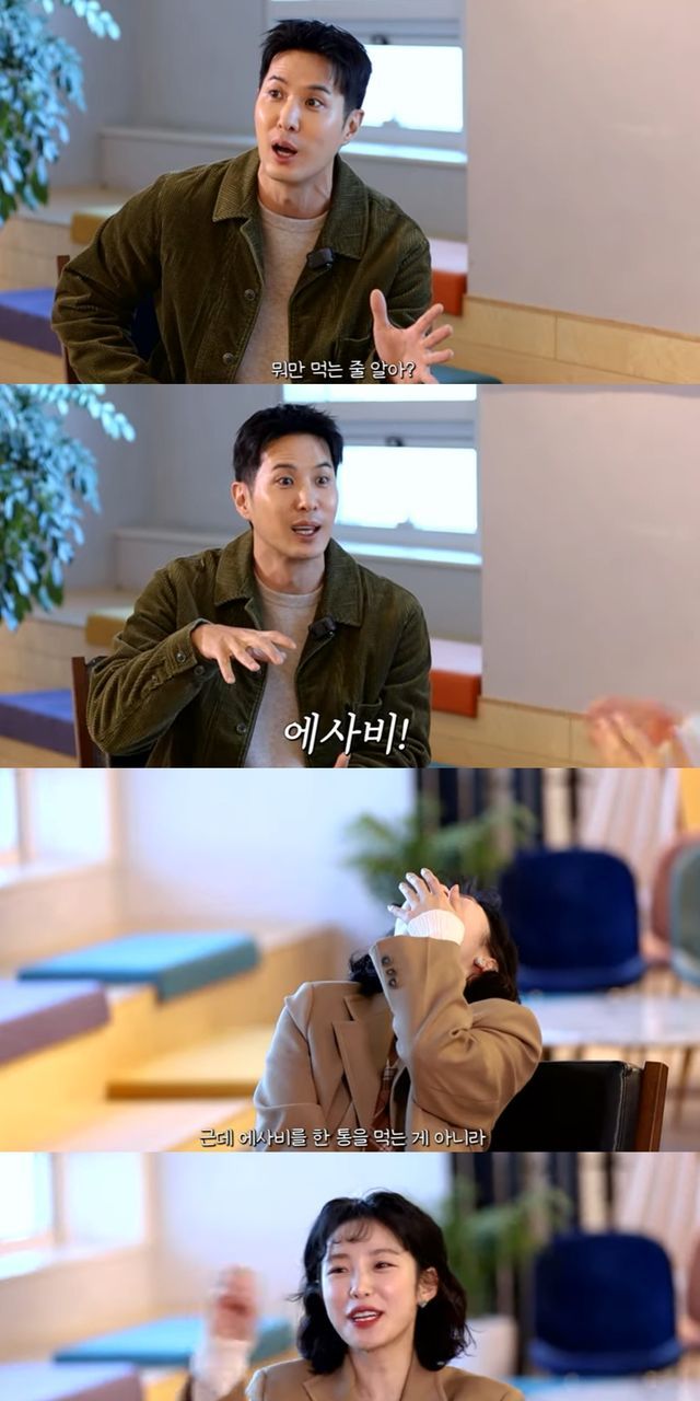 김지석은 "난 너무 신기한 거다. 한 점도 안 먹고 텀블러에다가 애사비를 먹었다. 애사비를 한 통을 먹는 게 아니라 한 통을 마시고 또 한 포를 (마셨다)"고 당시를 회상했다.