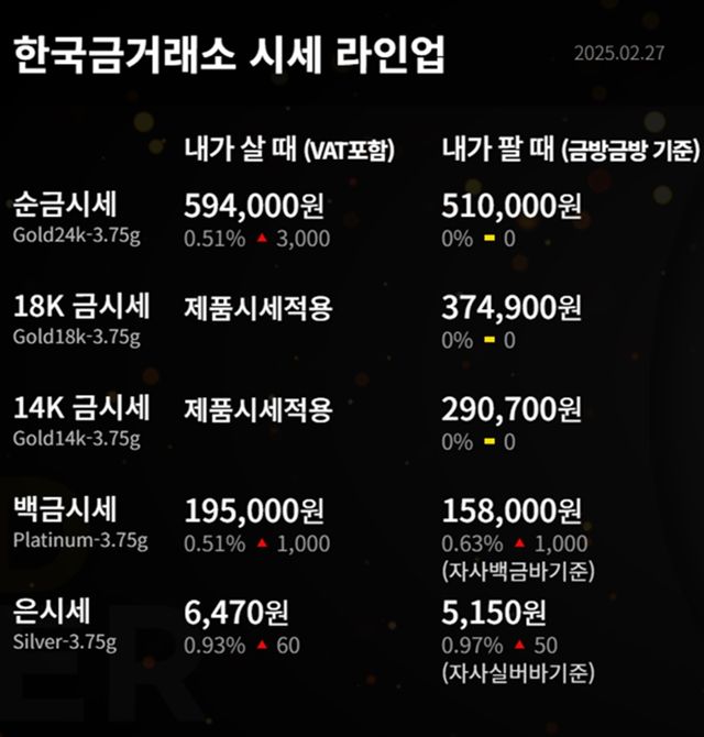 순금(24K) : 매입가 59만 4000원 / 매도가 51만 원