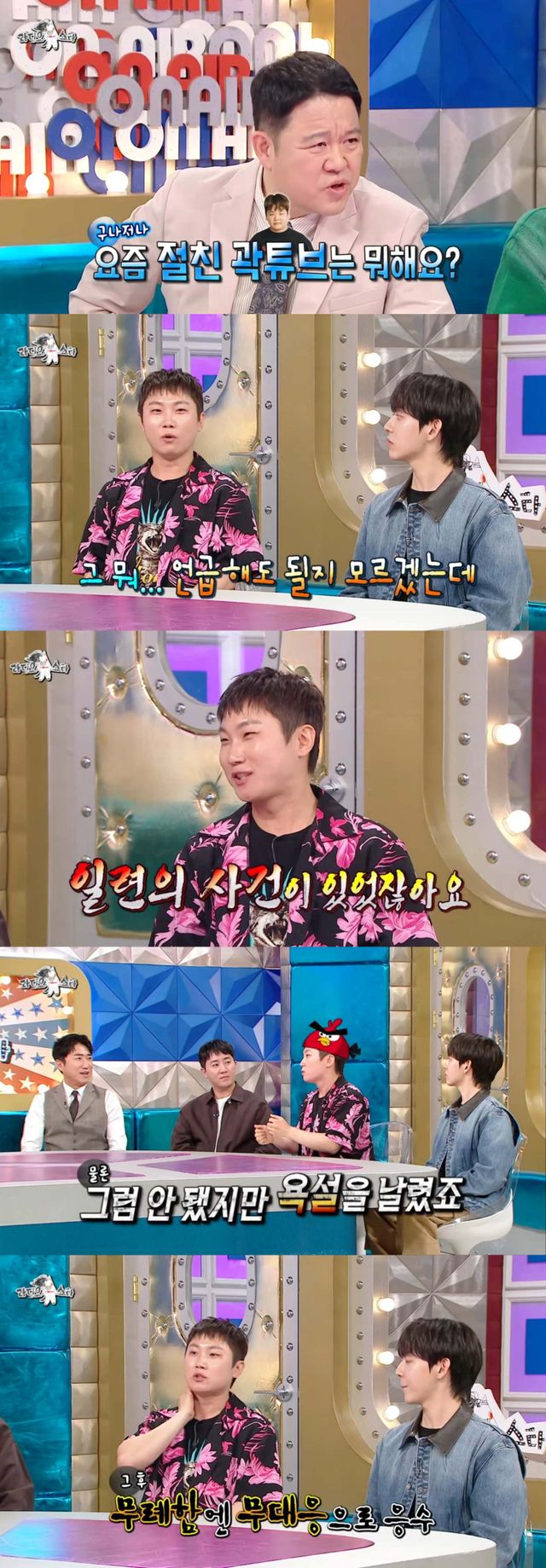 이를 들은 빠니보틀은 "(곽)튜브가 조회수가 잘 나왔고 요즘도 잘 나오는데"라며 뭔가 망설이는 듯 말을 꺼내더니 "언급해도 되는지 모르겠다. 일단 하겠다"며 "일련의 사건이 있었지 않냐"라고 말을 이었다.