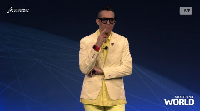 카림 라시드 산업 디자이너(65세)가 27일(현지시간) 미국 텍사스주 휴스턴에서 열린 다쏘시스템의 연례행사 ‘3D익스피리언스 월드2025’ 마지막 날 기조연설 발표자로 나서 이같이 말했다.