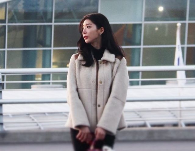그는 이날 크림 컬러의 일명 ‘뽀글이 재킷’ 코디에 블랙 상·하의를 매치, 마젠타 핑크 컬러의 미니백을 포인트로 주고 공항패션 룩을 완성했다.