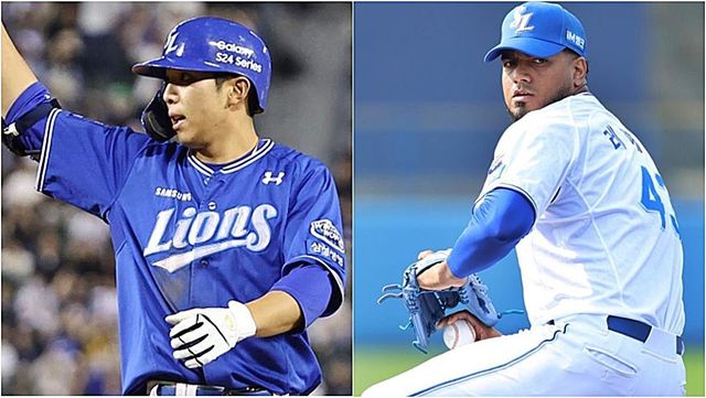 왼쪽부터 삼성 라이온즈 내야수 김영웅, 선발투수 데니 레예스 / 연합뉴스, 삼성 라이온즈 제공