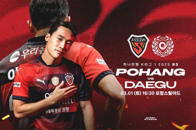 포항 스틸러스는 다음 달 1일 포항스틸야드에서 대구FC와 하나은행 K리그1 2025 3라운드를 펼친다. 지난 홈경기 이후 조호르, 춘천 장거리 원정을 떠났던 포항 스틸러스는 다시 홈으로 돌아와 연패를 깨고 분위기 반등을 노린다.