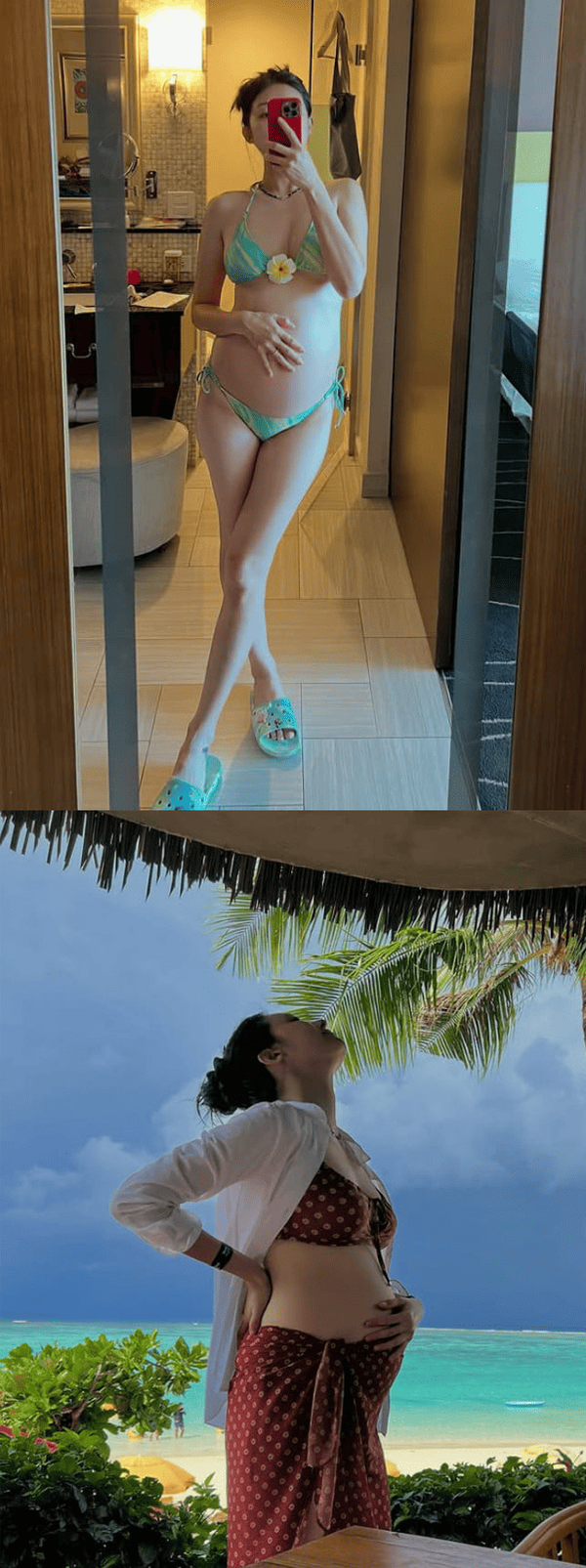 공개된 사진과 영상에서 현아는 만삭인 배로도 숨겨지지 않는 글래머러스한 몸매와 피지컬을 과시했다. 비키니를 입고도 군살 없는 몸매가 특히 눈에 띄었다.