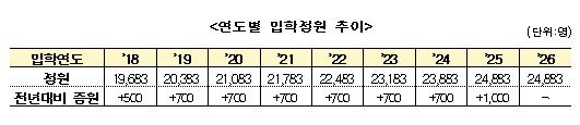다만 올해 동결 결정은 지난해 의정갈등 국면에서 상급종합병원 중심으로 신규 채용이 감소했다는 점이 배경으로 작용했다. 단기적으로 취업난이 심화한 상황에서 고용 확대 정책의 효과에 대한 모니터링이 우선돼야 한다고 판단한 것이다.