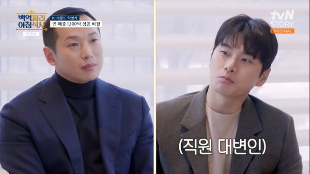27일 방송된 tvN STORY '백억짜리 아침식사'(이하 '아침식사') 2회에서는 세계적인 억만장자 만수르와 함께해 화제를 모은 허니버터 아몬드의 윤문현 대표가 출연했다.