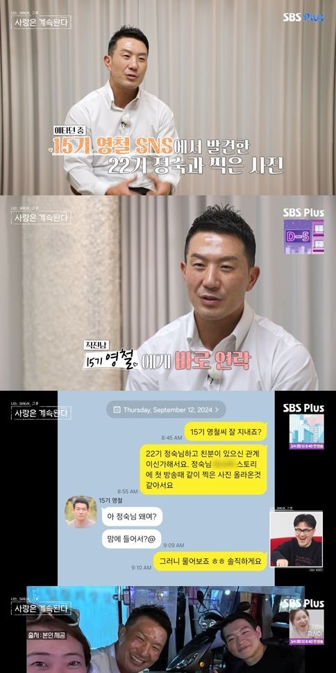 하지만 2주 동안 답장이 없어 10기 상철은 애가 탔었다고. 결국 그는 22기 정숙과 친분이 있는 15기 영철과 연락을 시도했다.