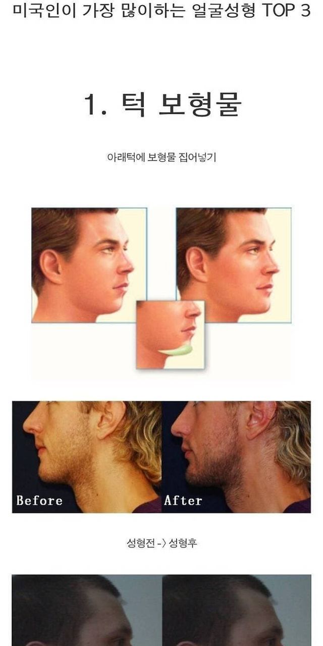 미국의 웹 사이트나 성형 고민 글을 살펴보면 '얇고 갸름한 턱 때문에 고민' 이라거나