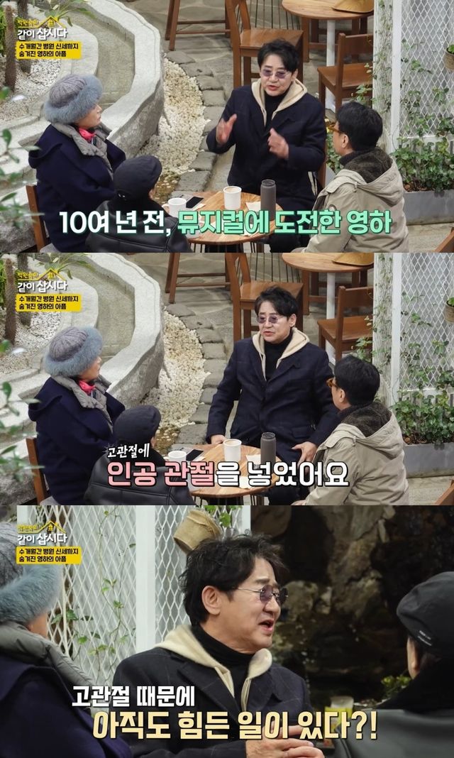 10여년 전, 뮤지컬에 도전한 이영하는 무대 장치 실수로 추락하는 사고를 당했다. 당시 고관절이 골절되는 심각한 부상을 입었다고.