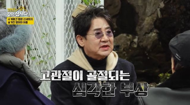 이영하는 "고관절에 인공 관절을 넣었다"며 "수술 후에도 몇 개월을 움직이지 못했다"며 오랫동안 병원 신세를 져야 했다고 발했다.
