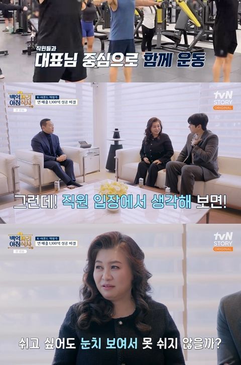 그리고 옷만 갈아입고 출근, 보통 오전 5시 30분~6시 사이에 도착해 종이 신문을 읽는다고. 이어 그는 "회사 근처 헬스장으로 7시까지 간다"면서, 직원들과 함께 운동한다고 밝혀 눈길을 끌었다.