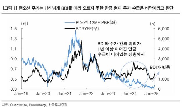최 연구원은 “2023년 말 HMM 인수 추진을 기점으로 주가가 BDI 상승을 못 따라가기 시작했는데, 결과적으로 HMM 시가총액이 18조원까지 커졌음을 감안하면 팬오션의 판단이 틀리지 않았음을 재평가할 필요가 있다”고 강조했다. 그는 “투자여력은 여전히 남아있다”며 “LNG선 사업강화 및 주주환원 등 보다 효율적인 방법으로 주주가치를 제고하는 데 쓰일 전망”이라고 덧붙였다.