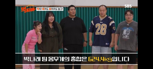 박나래 팀의 몸무게 총합은 624.4kg임