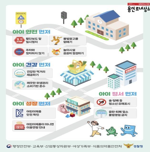 시는 용인교육지원청, 경찰서, 민간단체 등과 함께 분야별 점검반을 편성해 용인지역 내 105개 초등학교 주변 보호구역을 중심으로 점검할 계획이다.