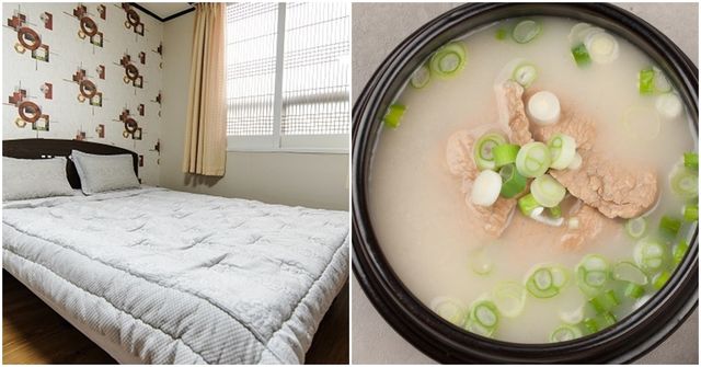 모텔 객실 자료 사진(왼쪽), 국밥 자료 사진. / Savvapanf Photo, photohwan-Shutterstock.com
