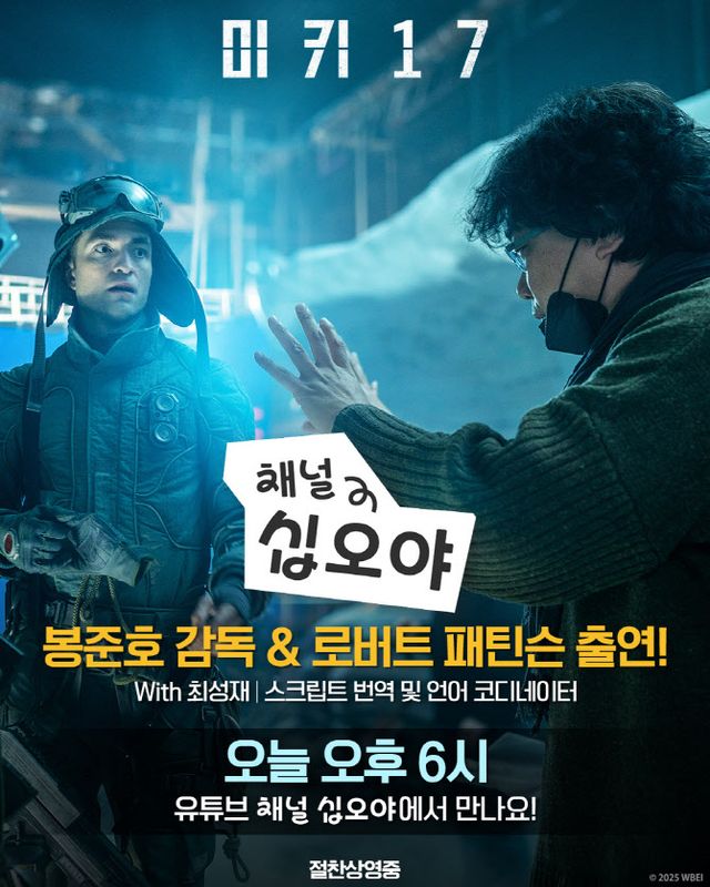 ‘미키 17’은 위험한 일에 투입되는 소모품(익스펜더블)으로, 죽으면 다시 프린트되는 ‘미키’(로버트 패틴슨 분)가 17번째 죽음의 위기를 겪던 중, 그가 죽은 줄 알고 ‘미키 18’이 프린트되면서 벌어지는 예측불허의 이야기를 그리는 영화다. ‘미키 17’의 봉준호 감독과 로버트 패틴슨이 바로 오늘, 28일(금) 개봉과 동시에 유튜브 ‘채널십오야’ ‘나영석의 나불나불’과 ‘이동진의 파이아키아’를 통해 관객들과 만난다.