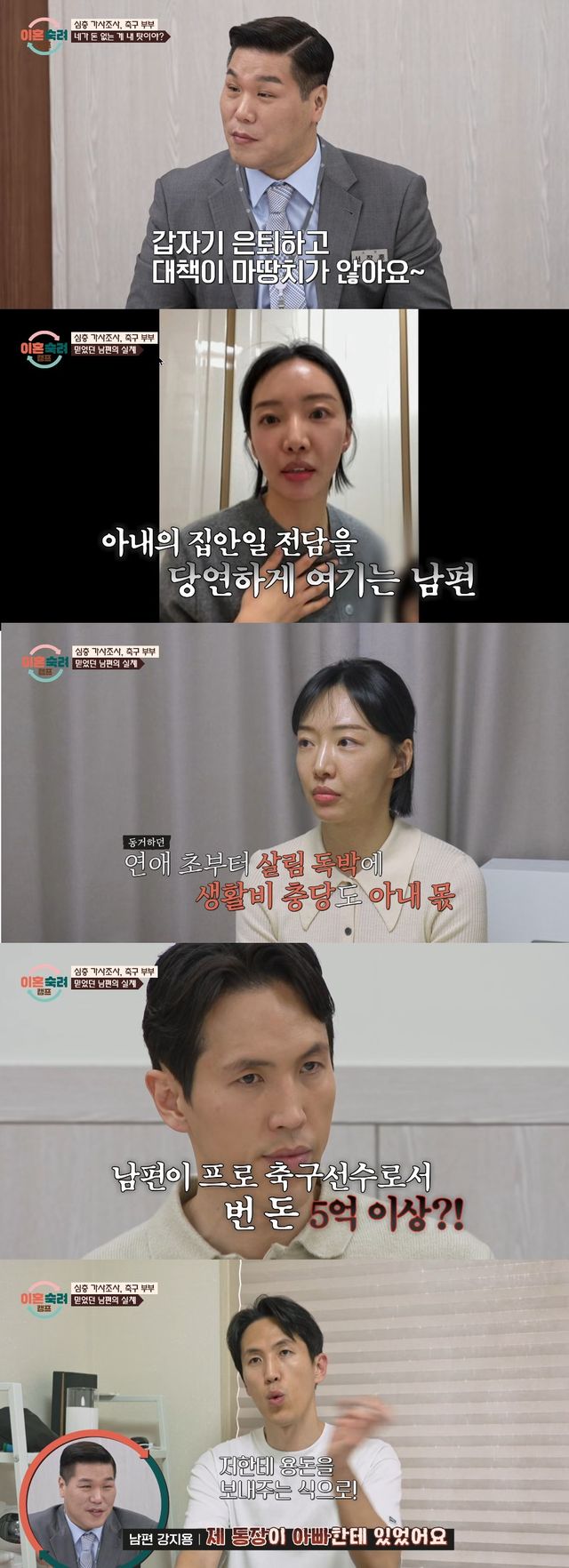 (엑스포츠뉴스 오승현 기자) 전 프로 축구선수 강지용 부부가 '이혼숙려캠프'에 출연, 충격적인 경제적 문제 사연을 공개했다.