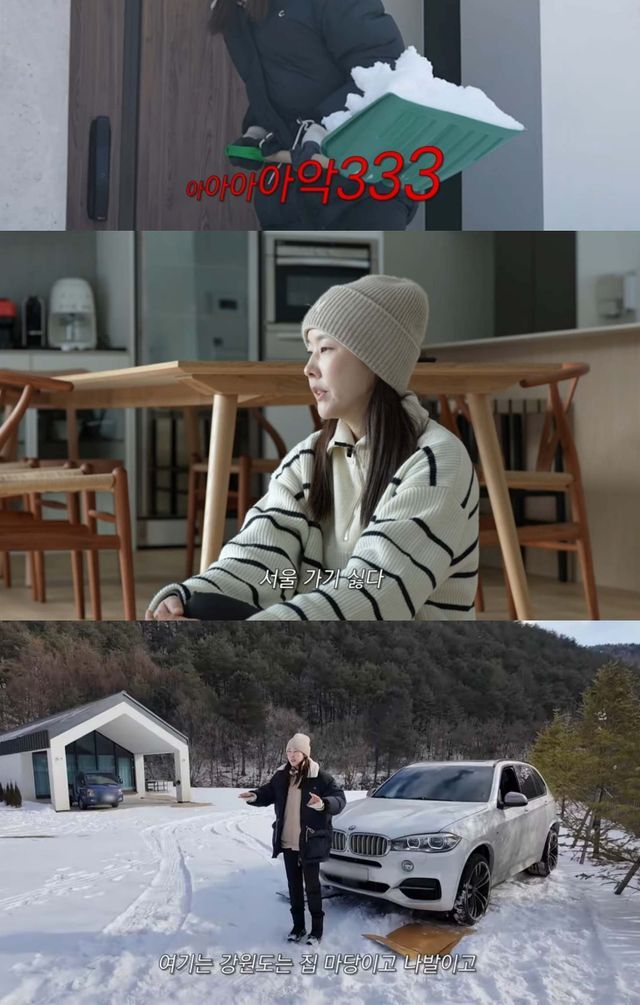 영상 속 한혜진은 강원도 홍천에 위치한 별장으로 향하는 차 안에서 "두 달 만에 가는 것 같다. 이유는 하는 거 없이 바빴다"며 "그래서 강원도 집을 너무 돌보지 못했다. 수도는 안 터졌나, 계량기는 무사한가"라고 걱정을 덧붙였다.