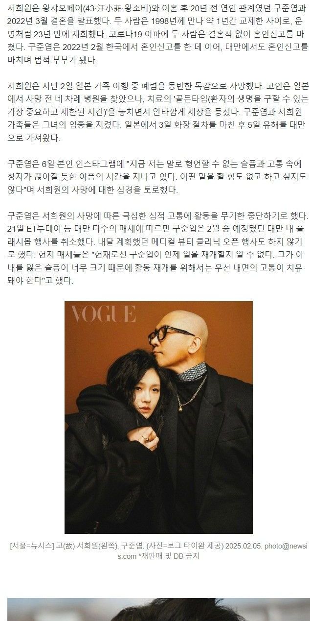 구준엽, 故서희원 유해 한달째 자택 보관…이웃들 항의