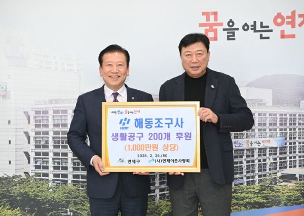 [한국미디어뉴스통신 박말희 기자] 연제구는 2월 25일 HDF해동조구사로부터 저소득층 및 봉사단체 등을 위한 생활공구 200개(1,000만 원 상당)를 전달받았다.