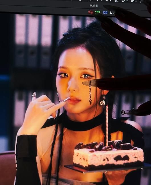 사진 속 지수는 케이크를 든 채 포즈를 취하고 있다. 화려한 메이크업과 네일아트를 한 지수는 독보적인 매력과 함께 화려한 비주얼을 뽐내 눈길을 사로잡았다.