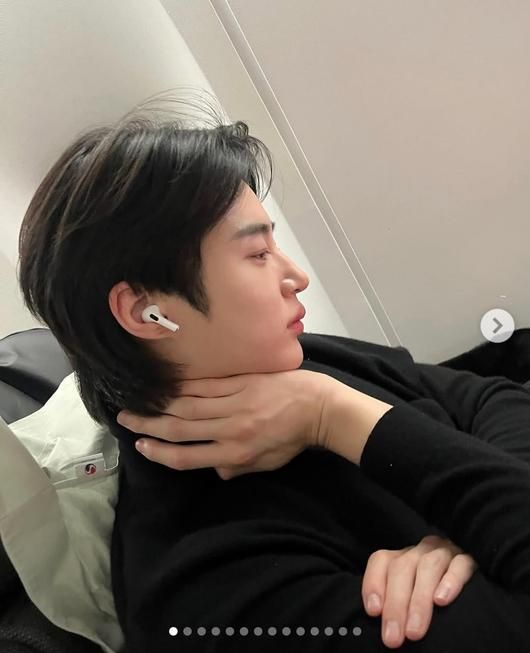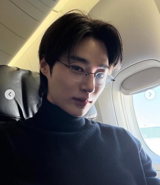 사진 속 변우석은 이어폰을 끼고 기내에 앉아있는 모습이다. 콧대가 돋보이는 옆모습이 눈길을 끈다. 다른 사진에서는 안경을 끼고 색다른 모습을 보여줘 시선을 사로잡았다.