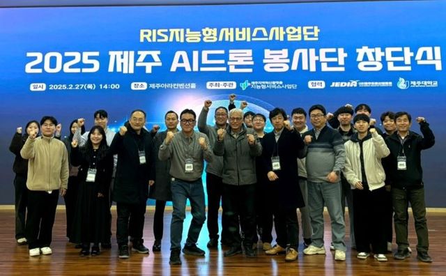 제주드론산업협회(회장 안광희)와 제주지역혁신플랫폼(RIS) 지능형서비스사업단(단장 변영철)은 지난 27일 제주대학교 아라컨벤션홀에서 '제주AI드론봉사단' 창단식을 열고, 청년과 생산자를 중심으로 한 제주농업 디지털 전환(DX)의 본격적인 시작을 알렸다.