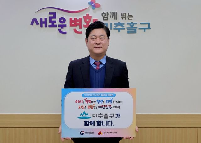 이영훈 구청장은 “이번 캠페인은 우리 사회가 직면한 인구문제의 심각성을 공유하고, 해결 방안을 모색하는 중요한 계기가 될 것”이라며, “아이는 행복하고, 청년은 희망을 키우며, 노인은 보람 있는 건강한 사회가 될 수 있도록 인구구조 변화에 적극적으로 대응해 지속 가능한 미추홀구를 만들어 가겠다.”라고 말했다.