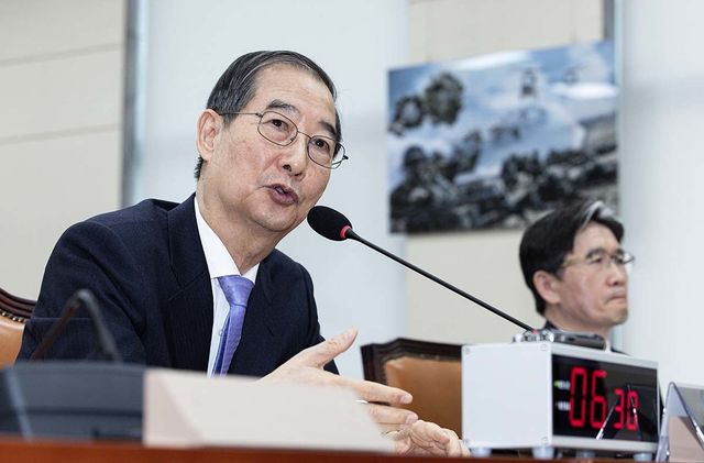 한덕수 국무총리가 25일 오전 서울 여의도 국회에서 열린 윤석열 정부의 비상계엄 선포를 통한 내란 혐의 진상규명 국정조사 제5차 청문회에서 의원 질의에 답변하고 있다. / 뉴스1