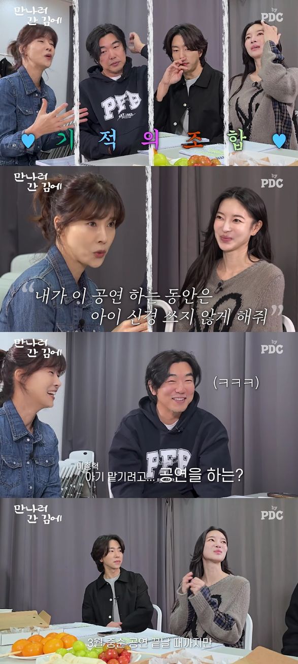 이어 "그런데 윤지 멋있더라. 남편한테 '이 공연 하는 동안은 아이 신경 쓰지 않게 해줘'라고 선언을 했다더라"라고 이야기했다. 이종혁은 "아이 맡기려고 연극을 하는 거냐"라고 거들었다.