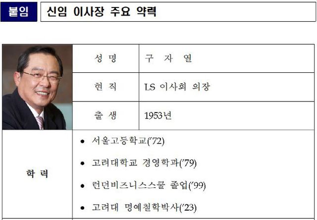 구자열 신임 이사장은 1978년 엘지(LG)상사에 평사원으로 입사한 이래 40여 년간 무역 전문가로서 기업 경영에 참여해왔다. 2013년부터 8년 동안 LS그룹 회장을 지냈으며, 현재 LS 이사회 의장으로 재직 중이다.