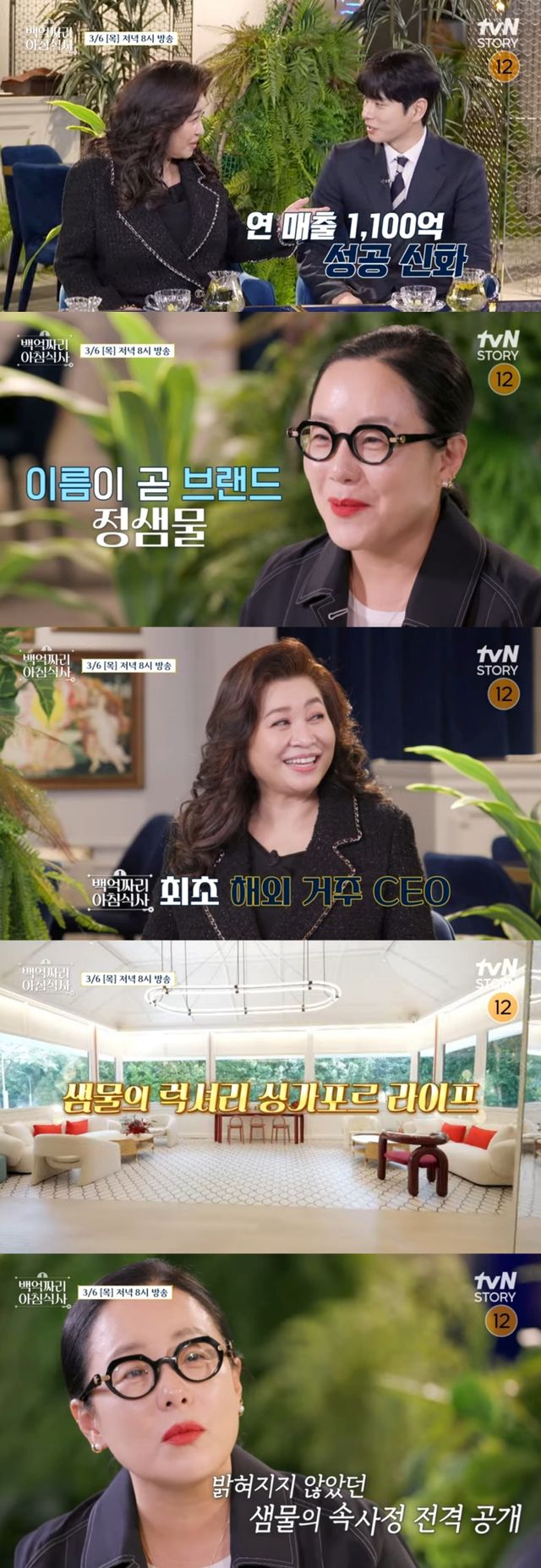 27일 방송된 tvN STORY '백억짜리 아침식사'(이하 '백억짜리') 말미에 전파를 탄 예고편에는 메이크업아티스트 정샘물이 등장했다.