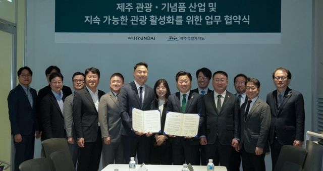 제주도는 28일 오전 여의도 더현대 서울에서 현대백화점과 ‘제주 관광․기념품 산업 및 지속가능한 관광 활성화를 위한 업무협약’을 체결했다.