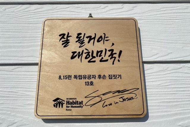 독립운동가 후손이 살 주택을 지어서 며칠 전 그 13번째 집을 기증하기