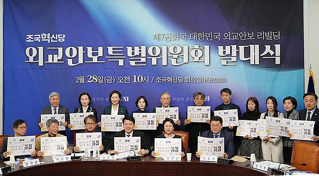28일 조국혁신당은 김준형 의원을 위원장으로 하는 외교안보특별위원회 발대식을 가졌다. 김 위원장과 함께 강경숙, 박은정, 백선희, 이해민 의원이 부위원장으로 참여하고 문재인 정부 출신 인사들이 자문위원으로 함께했다.