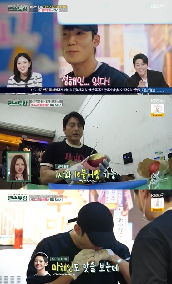 이내 한식 부스 속, 누군가를 발견한 정해인은 "나 누군지 알았다. 정해인 씨를 소개한다"며 붕어빵 담당 사장을 소개했다. 그러나 붕어빵 판매는 부진이었고, 류수영도 고민에 빠졌다. 류수영은 애플파이의 붕어빵 버전을 고안해냈고, 사과를 공수해 붕어빵 사장님과 같이 만들었다.