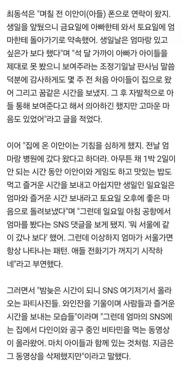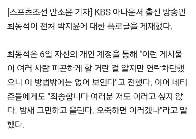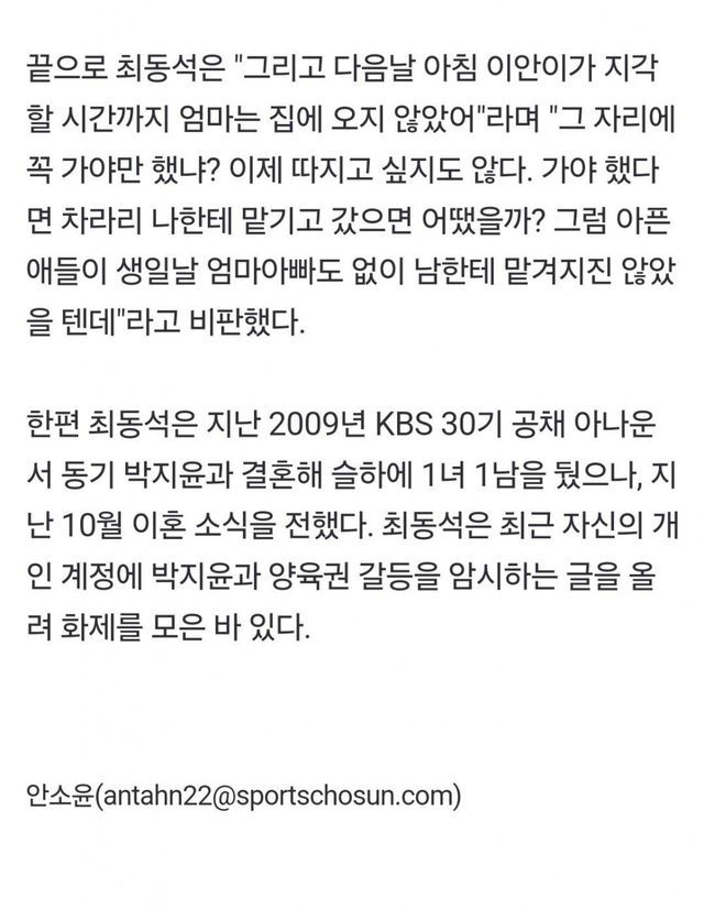 최동석, 전처 박지윤 폭로 아픈아들 두고 술 파티